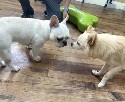 smart-dogの幼稚園は”少頭数制”を導入し、1日7匹までのお預かりです。 今日は急遽5匹のわんちゃんたちでお勉強です! 遊びの時間:他犬とのコミュニケーションを学ぶ 午前中は”遊びの時間”として、他犬との関わり方を・・・