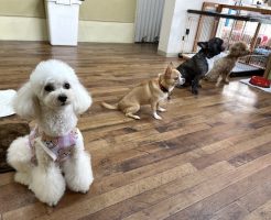 smart-dogの幼稚園は”少頭数制”を導入し、1日7匹までのお預かりです。 今日は7匹のわんちゃんたちでお勉強です! 遊びの時間:他犬とのコミュニケーションを学ぶ 午前中は”遊びの時間”として、他犬との関わり方を学び・・・