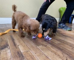 8月26日の幼稚園(預かりレッスン)の様子〜キャバリアの”ダニエルくん”とダックスフンドの”アークスくん”が楽しく遊んでいます!〜