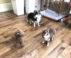 smart-dogの幼稚園は”少頭数制”を導入し、1日7匹までのお預かりです。 今日は体調不良のわんちゃんが重なり急遽3匹のわんちゃんたちでお勉強です! 遊びの時間:他犬とのコミュニケーションを学ぶ 午前中は”遊びの時間・・・
