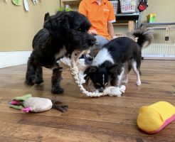 smart-dogの幼稚園は”少頭数制”を導入し、1日6匹までのお預かりです。 今日4匹のわんちゃんたちでお勉強です(^ ^) 遊びの時間:他犬とのコミュニケーションを学ぶ 午前中は”遊びの時間”として、他犬との関わり方・・・