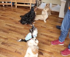 smart-dogの幼稚園は”少頭数制”を導入し、1日6匹までのお預かりです。 今日4匹のわんちゃんたちでお勉強です(^ ^) 遊びの時間:他犬とのコミュニケーションを学ぶ 午前中は”遊びの時間”として、他犬との関わり方・・・