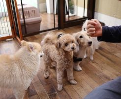 smart-dogの幼稚園は”少頭数制”を導入し、1日6匹までのお預かりです。 今日は4匹のわんちゃんたちでお勉強!ポメラニアンの”くうちゃん”が初参加です(^ ^) 遊びの時間:他犬とのコミュニケーションを学ぶ 午前中・・・