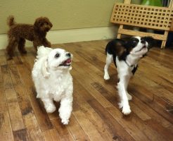 smart-dogの幼稚園は”少頭数制”を導入し、1日6匹までのお預かりです。 今日は4匹のわんちゃんたちでお勉強です(^ ^) 遊びの時間:他犬とのコミュニケーションを学ぶ 午前中は”遊びの時間”として、他犬との関わり・・・