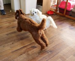 smart-dogの幼稚園は”少頭数制”を導入し、1日6匹までのお預かりです。 今日は3匹と少なかったものの、チワワの”ビスコちゃん”が参加しました! 遊びの時間:他犬とのコミュニケーションを学ぶ 午前中は”遊びの時間”・・・