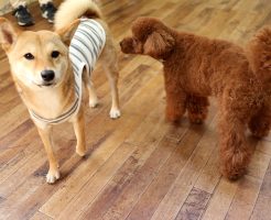 今日は5匹のわんちゃん達でレッスンを行いました! 柴犬の”るなちゃん”が初参加です(^ ^) 遊びの時間:他犬とのコミュニケーションを学ぶ 午前中は”遊びの時間”として、他犬との関わり方を学びます!遊びたい盛りのわんこは・・・