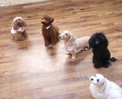 今日は5匹のわんちゃん達でレッスンを行いました! 遊びの時間:他犬とのコミュニケーションを学ぶ 午前中は”遊びの時間”として、他犬との関わり方を学びます!遊びたい盛りのわんこは遊び方を学習し、怖がりなわんこは他犬といる空・・・