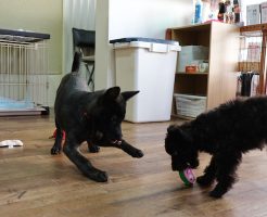 今日は急遽臨時でレッスンを行いました! 遊びの時間:他犬とのコミュニケーションを学ぶ 午前中は”遊びの時間”として、他犬との関わり方を学びます!遊びたい盛りのわんこは遊び方を学習し、怖がりなわんこは他犬といる空間にストレ・・・