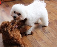 今日は4匹のわんちゃん達でレッスンを行いました! 遊びの時間:他犬とのコミュニケーションを学ぶ 午前中は”遊びの時間”として、他犬との関わり方を学びます!遊びたい盛りのわんこは遊び方を学習し、怖がりなわんこは他犬といる空・・・