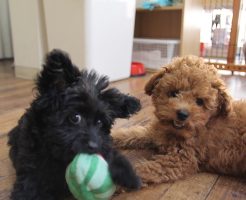 今日は4匹のわんちゃん達が幼稚園に登園! 子犬達が大はしゃぎ!世話役のこてつくんも大変です^^; 遊びの時間:他犬とのコミュニケーションを学ぶ 午前中は”遊びの時間”として、他犬との関わり方を学びます!遊びたい盛りのわん・・・
