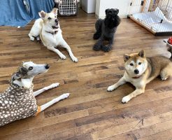smart-dogの幼稚園は”少頭数制”を導入し、1日7匹までのお預かりです。 今日は急遽4匹のわんちゃんたちでお勉強です! 遊びの時間:他犬とのコミュニケーションを学ぶ 午前中は”遊びの時間”として、他犬との関わり方を・・・