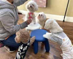 smart-dogの幼稚園は”少頭数制”を導入し、1日7匹までのお預かりです。 今日は急遽5匹のわんちゃんたちでお勉強です! 遊びの時間:他犬とのコミュニケーションを学ぶ 午前中は”遊びの時間”として、他犬との関わり方を・・・