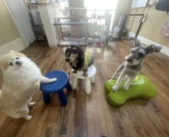 smart-dogの幼稚園は”少頭数制”を導入し、1日7匹までのお預かりです。 今日は急遽5匹のわんちゃんたちでお勉強です! 遊びの時間:他犬とのコミュニケーションを学ぶ 午前中は”遊びの時間”として、他犬との関わり方を・・・