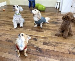 smart-dogの幼稚園は”少頭数制”を導入し、1日7匹までのお預かりです。 今日は7匹のわんちゃんたちでお勉強です! 遊びの時間:他犬とのコミュニケーションを学ぶ 午前中は”遊びの時間”として、他犬との関わり方を学び・・・