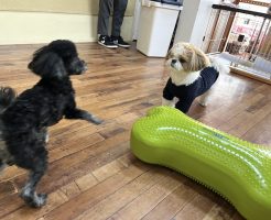 1月14日の幼稚園の様子(預かりレッスン)チワワの”茶々丸くん”がお友達の”ちゃこちゃん”に前足を乗せて遊びを誘う事が出来ました!〜