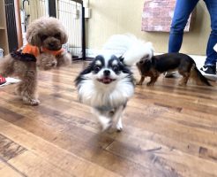 11月5日の幼稚園の様子(預かりレッスン)チワワの”茶々丸くん”がお友達の”レオンくん”に初めて遊びを誘うことが出来ました!〜
